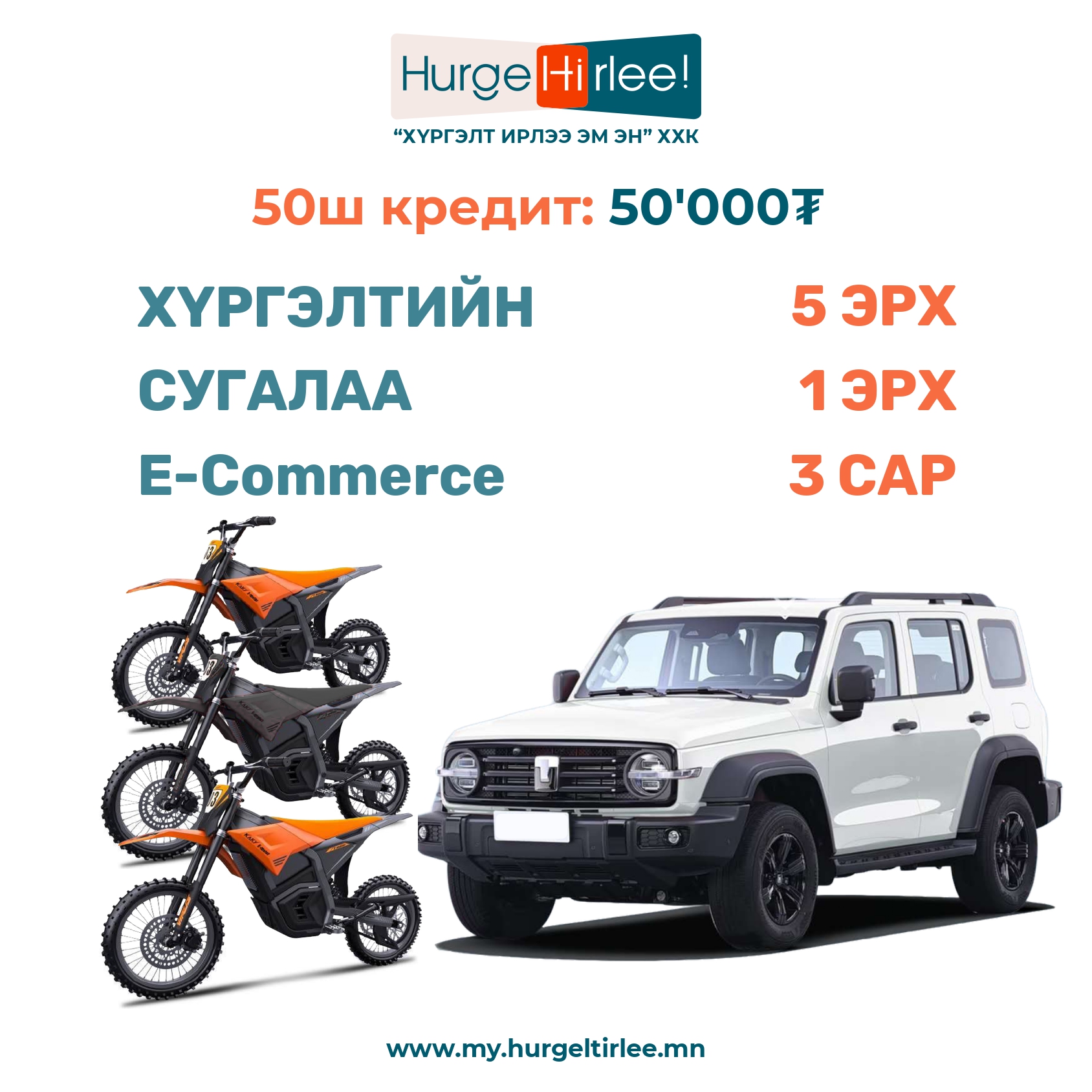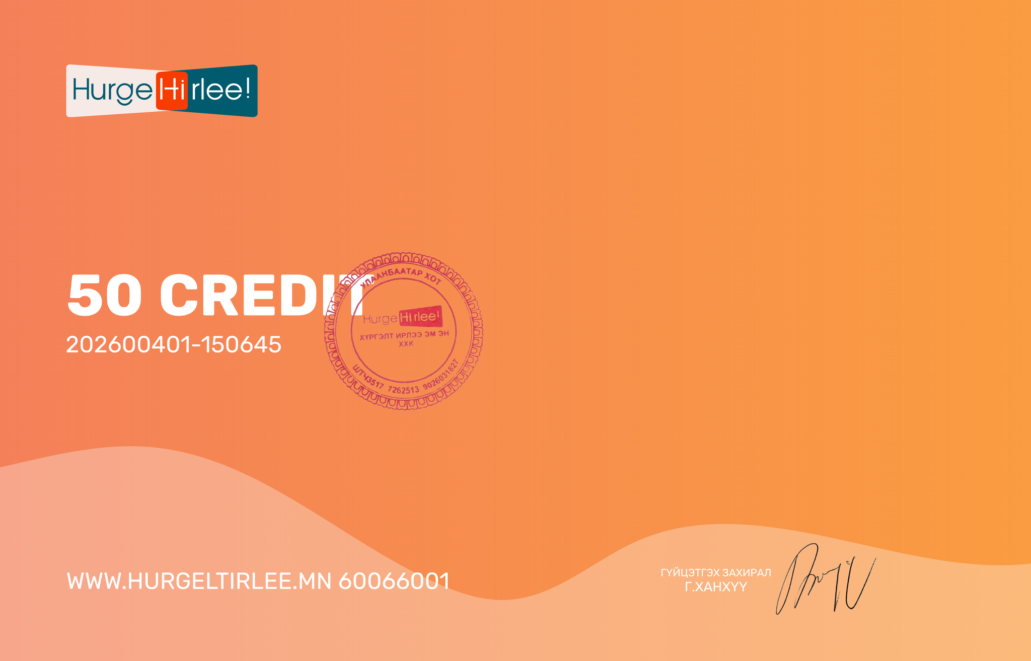 • Хүргэлт Ирлээ кредит 50 ширхэгтэй болно.